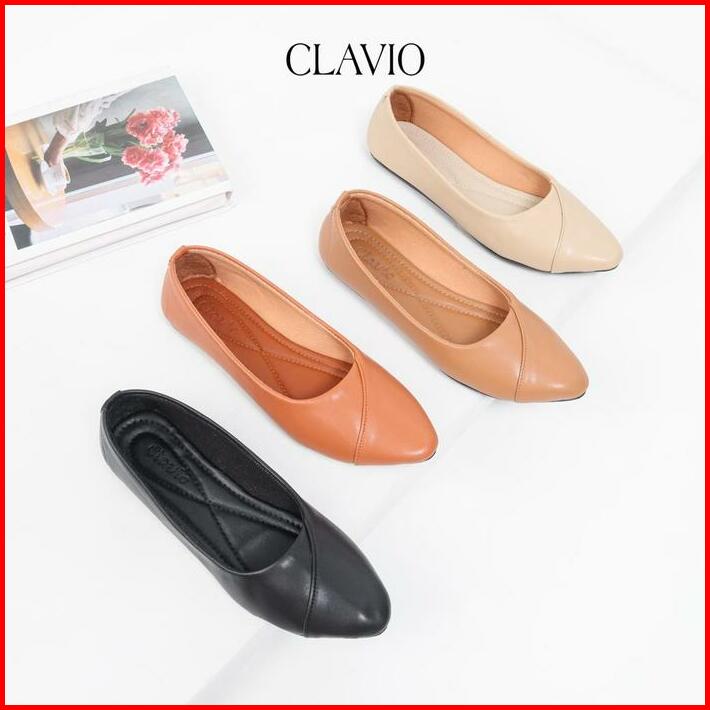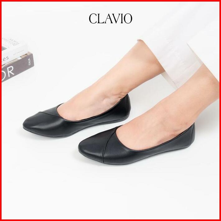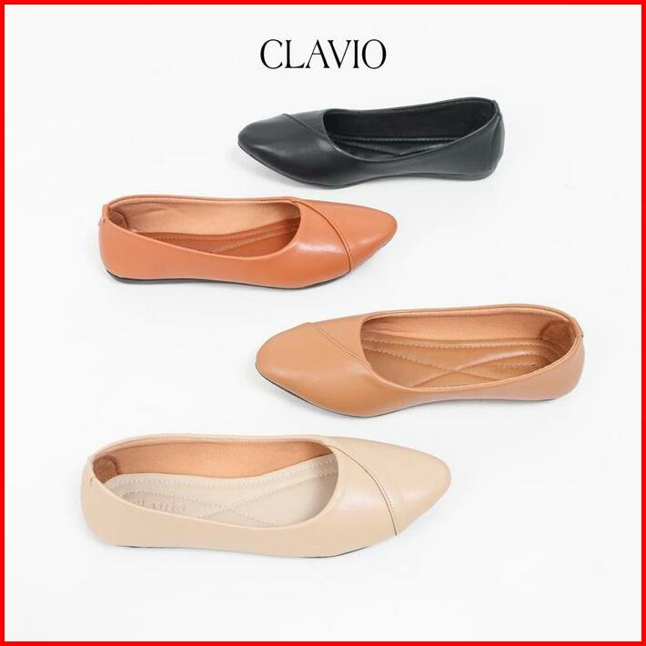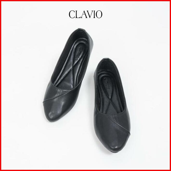 Clavio Berly Flatshoes Wanita Flat Balet Polos Berwarna Shoes Wanita Kerja Karet Hitam