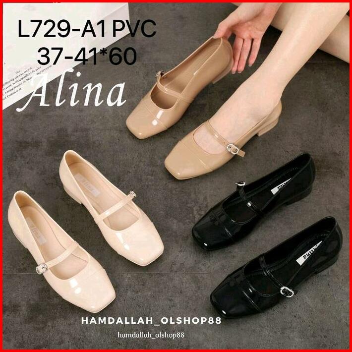 Sepatu Flat Shoes Alina L729-a1 Terbaru Dengan Tali Tengah Dan Insole Empuk Karet Jelly Untuk Wanita