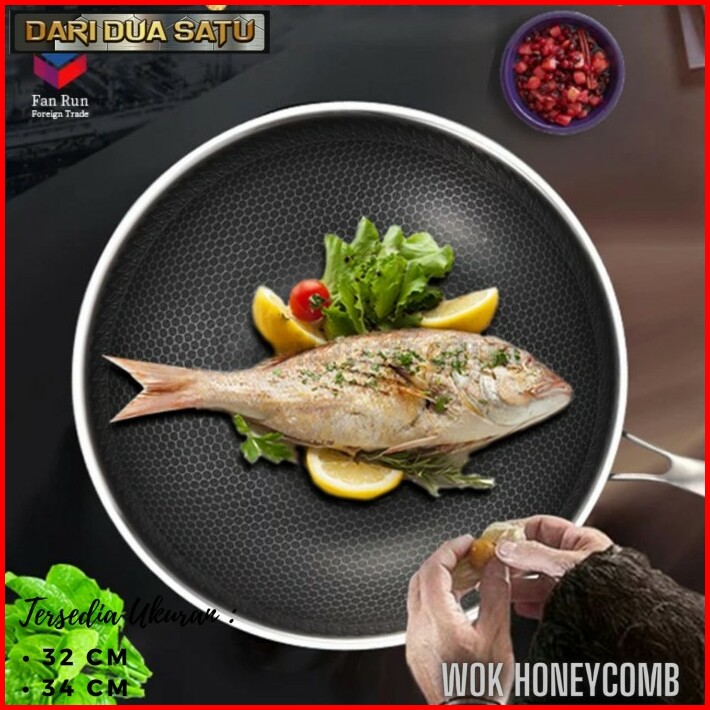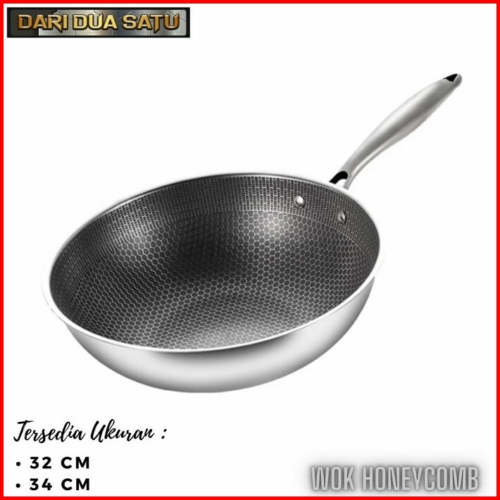 Wok Pan Wajan Penggorengan Gagang Stainless Honeycomb Deep Frypan