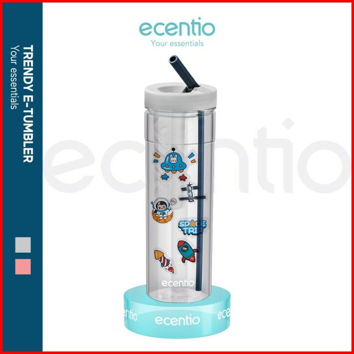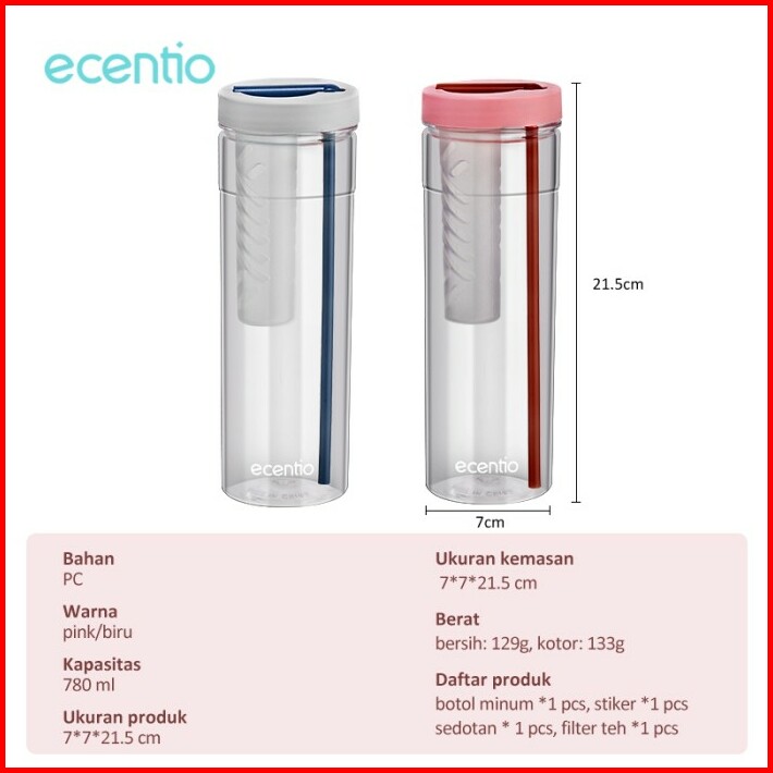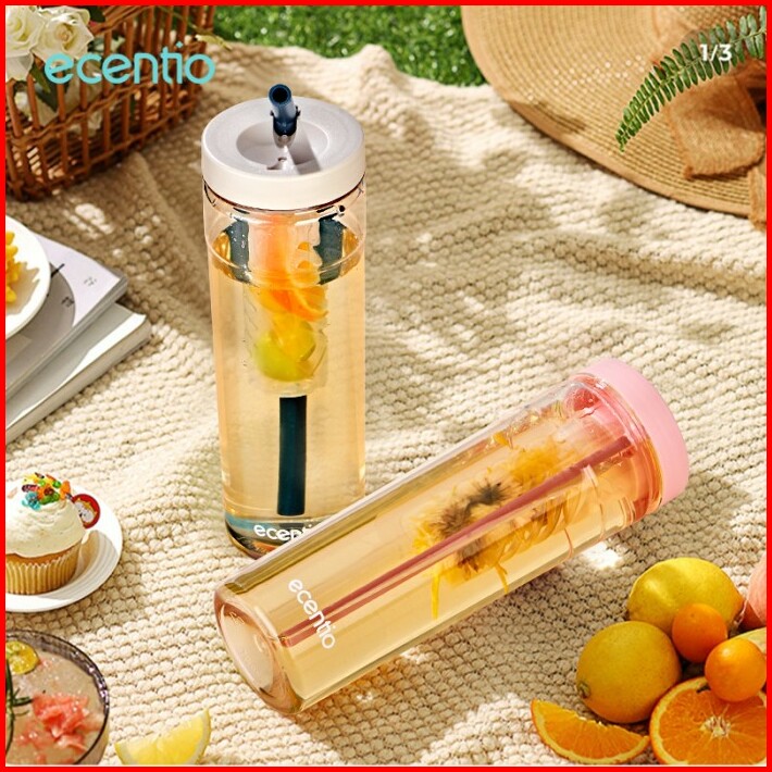 Ecentio Botol Minum Sedotan Transparan Tumbler Infused Free Stiker