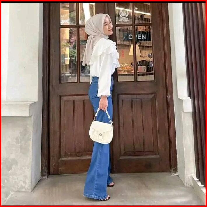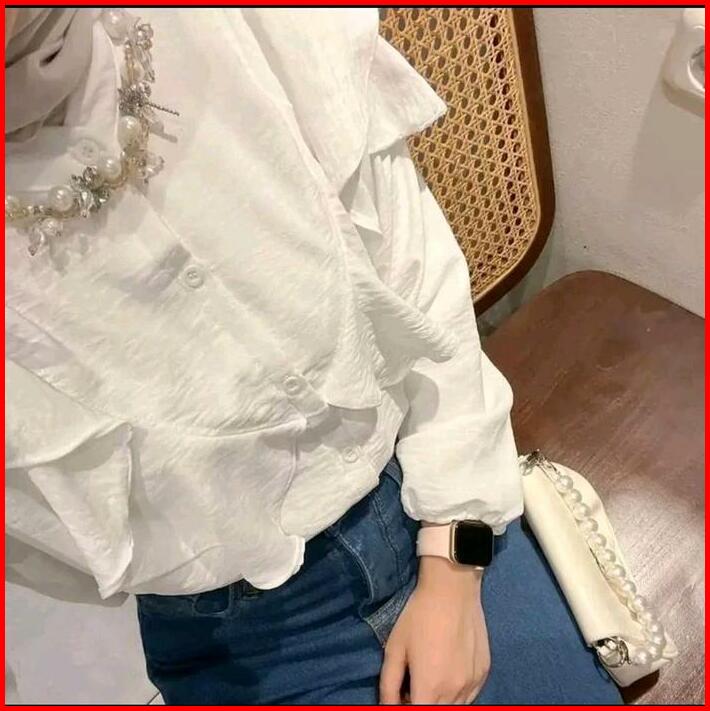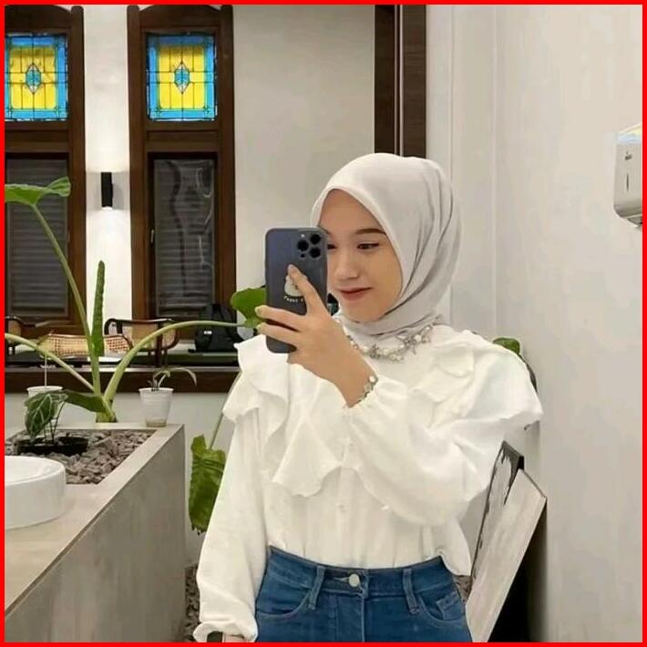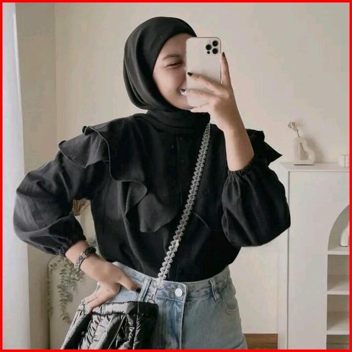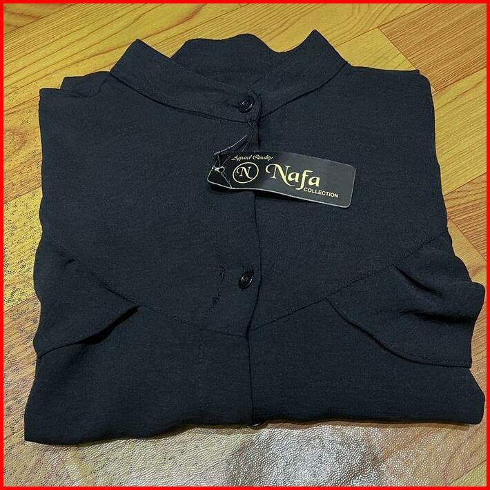 Nafa Blouse Atasan Wanita Kerah Sanghai- Baju Ruffle Polos Tangan Panjang Cringkle Rafella