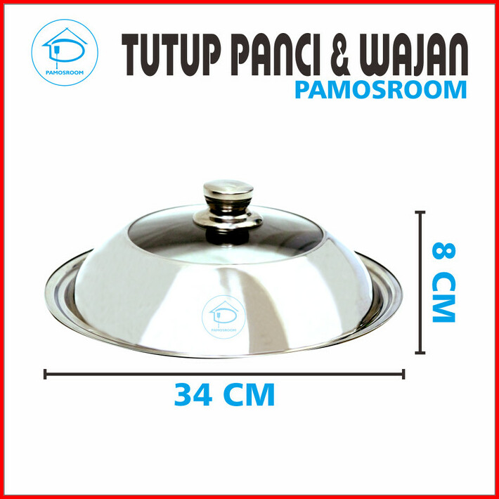 Pamosroom Tutup Wajan Kuali Panci Wok Pan Stainless Dengan Kaca 34cm