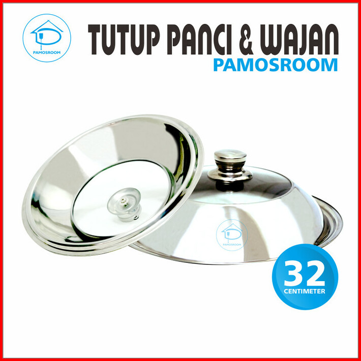 Pamosroom Tutup Wajan Kuali Panci Wok Pan Stainless Dengan Kaca 32cm
