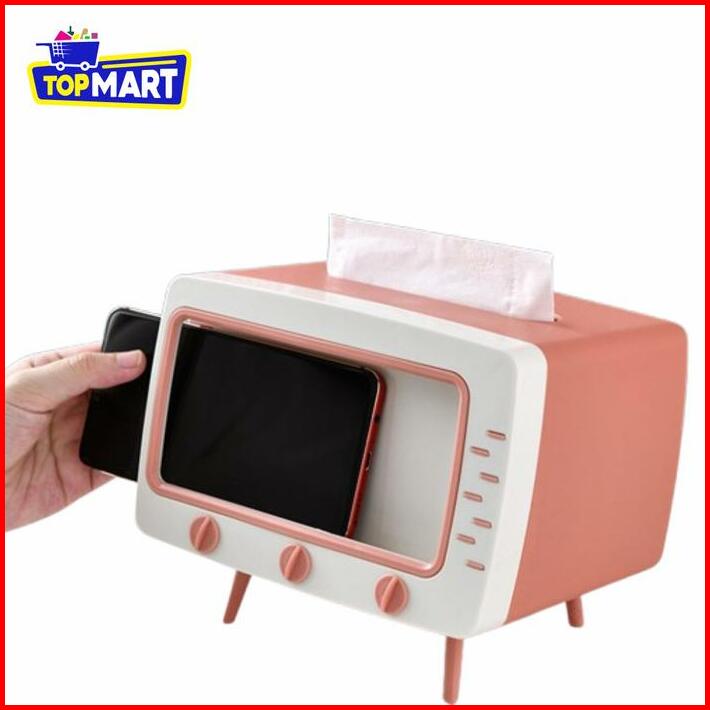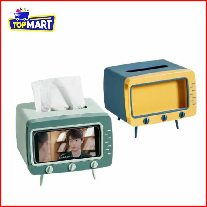 Topmart Kotak Tissue Box Organizer Bentuk Tv Tempat Tisu Stand Phone Holder