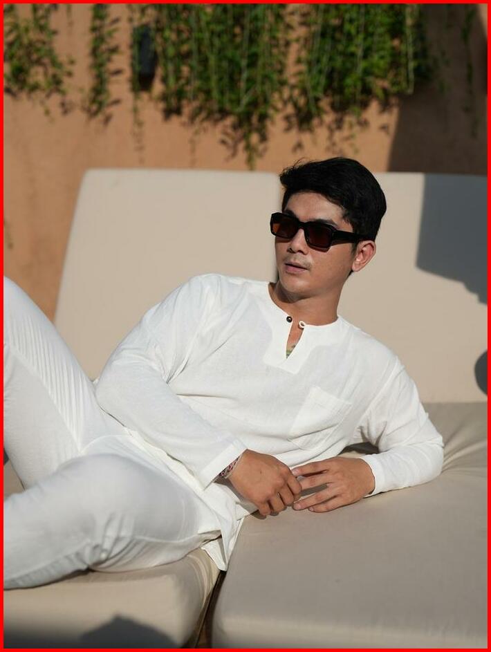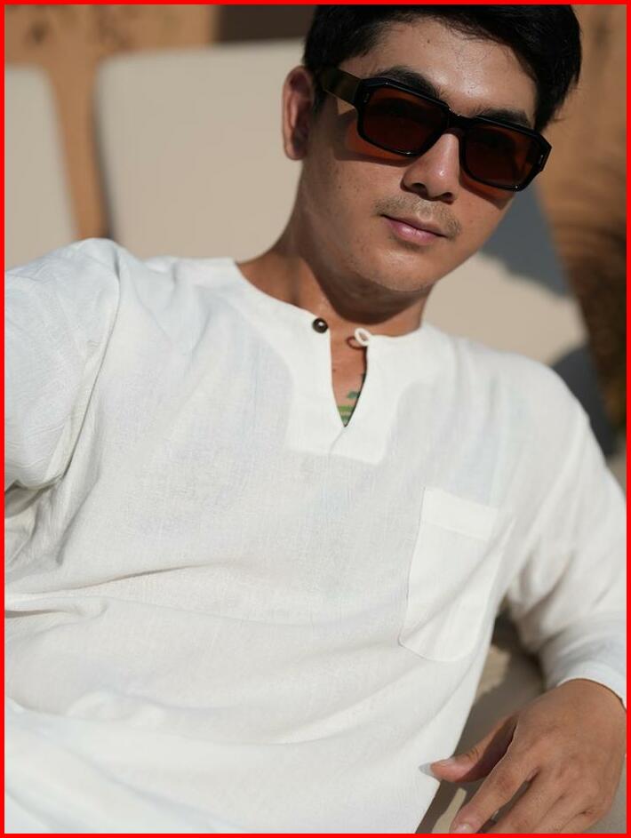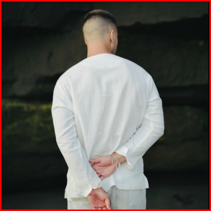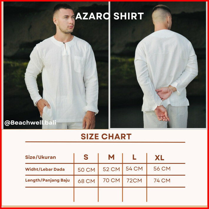 Beachwell Kemeja Azaro Linen Keringkel Putih Panjang Kemeja Casual Kurta
