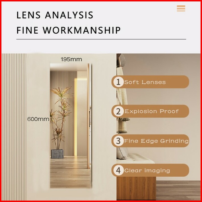 Cermin Lembut Akrilik 19.5 X 60cm Bentuk Aman Dan Tahan Ledakan Cermin