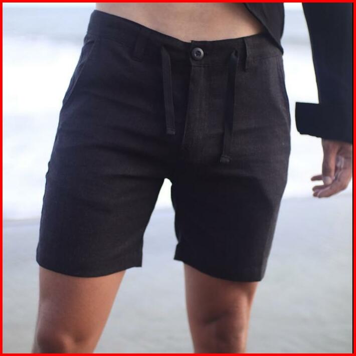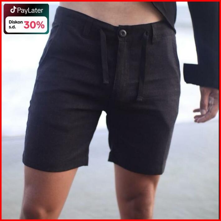 Linen Short Pant Black And White Celana Fit Pantai Keren