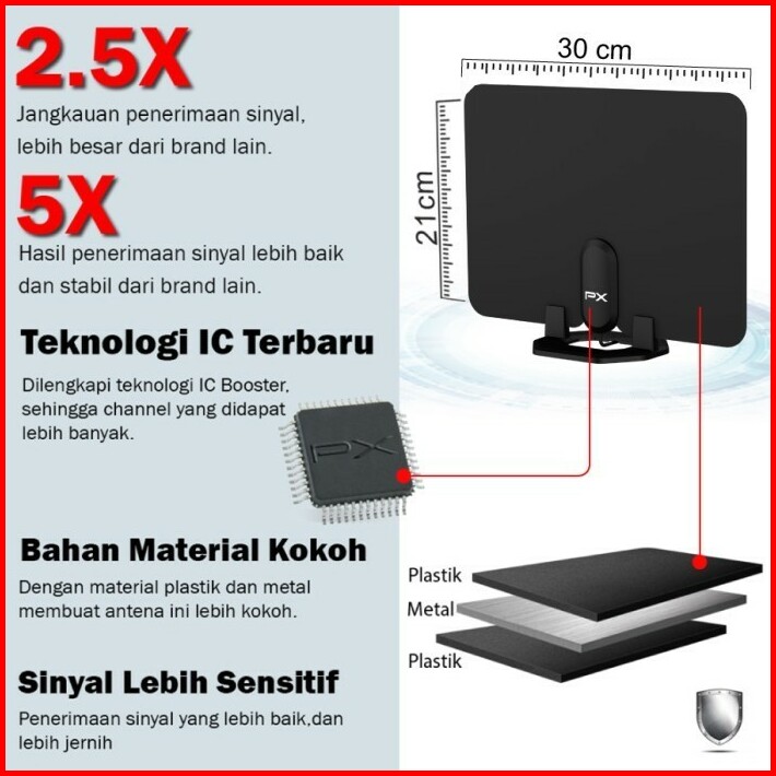 Antena Tv Digital Analog Indoor Antenna Booster Dvbt2 Px Uda-2000a