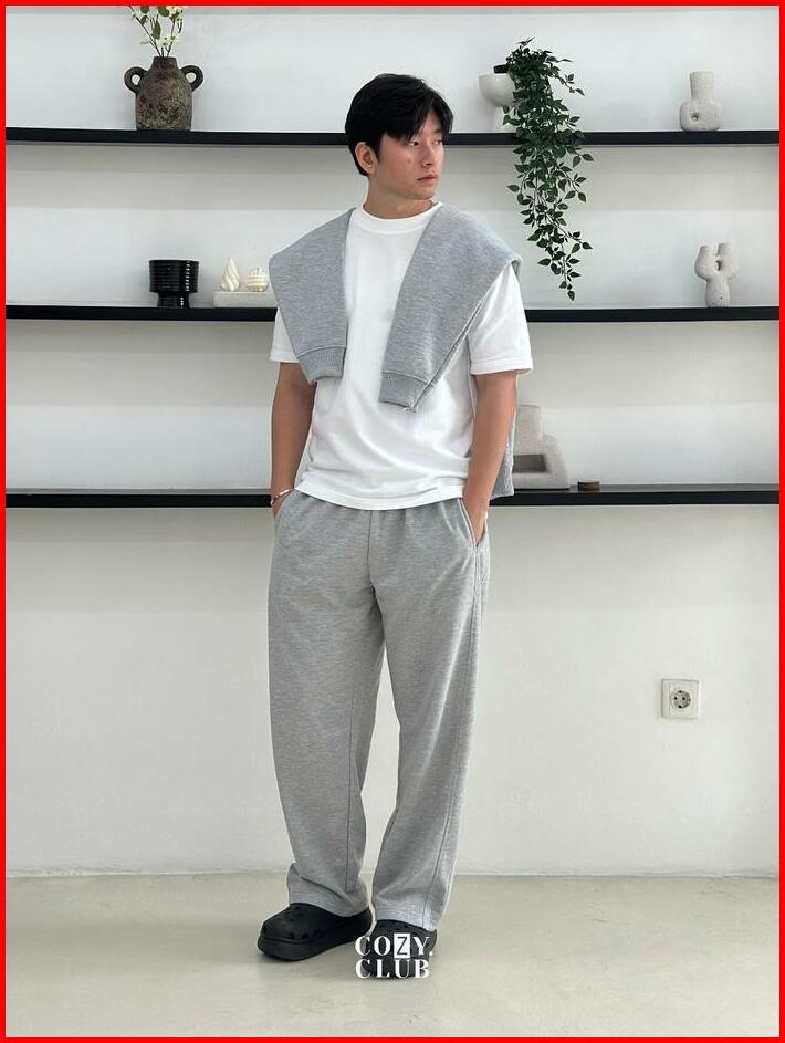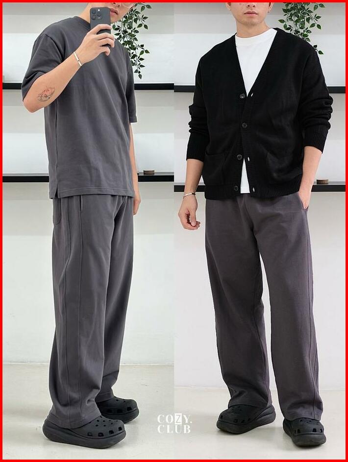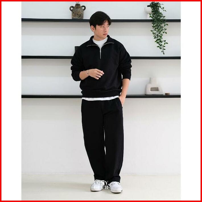 Cozyclub Essential Wide Sweatpants Celana Panjang Baggy Loose Fit Pinggang Stretch Celana Pria 131
