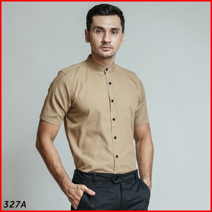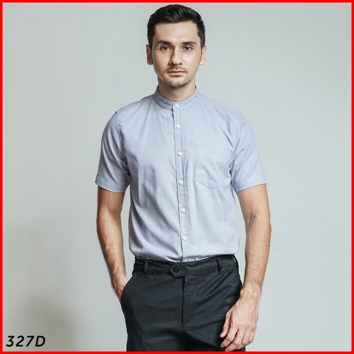 Hsrm Dobry Collarless Shirt Short Sleeves Kemeja Shangai Polos 01