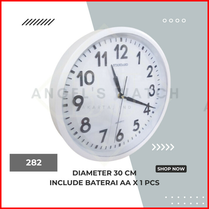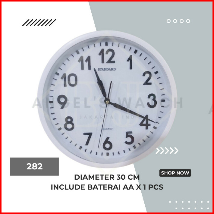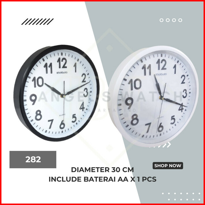 Jam Dinding Standard Kode 282 White Diameter 30cm Hitam Putih Tebal