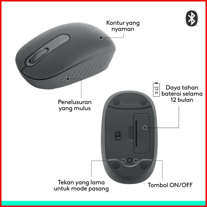 Logitech M196 Mouse Wireless Bluetooth Mouse Ringkas Dan Portabel Untuk Laptop Tablet Dan Lainnya Baterai 12 Bulan Penel