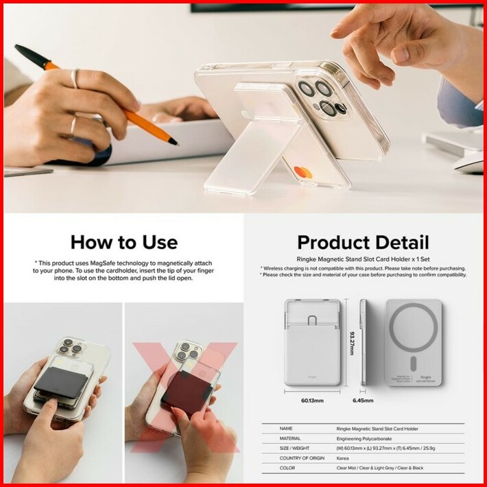 Ringke Magsafe Magnet Stand Slot Card Holder Black Dudukan Kartu Hp