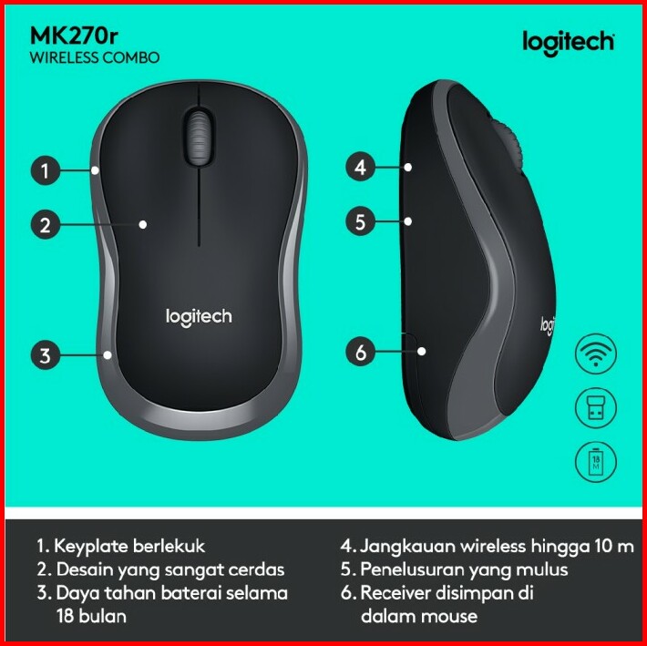 Logitech Mk270r Combo Keyboard Dan Mouse Wireless Multimedia Keys