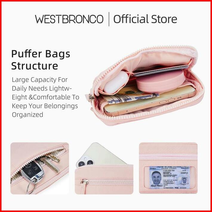 Westbronco Puffer Clousie Bag Dompet Untuk Dompet Berlapis Perunggu Wanita Dengan 3 Dompet Ritsleting Untuk Perjalanan P