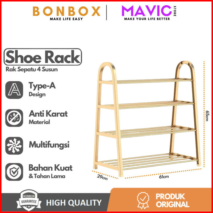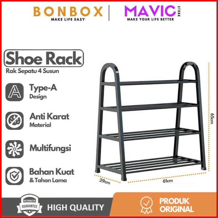Bonbox Bfs701 Rak Sepatu 4 Susun Baja Tipe A Anti Karat Shoe Rack