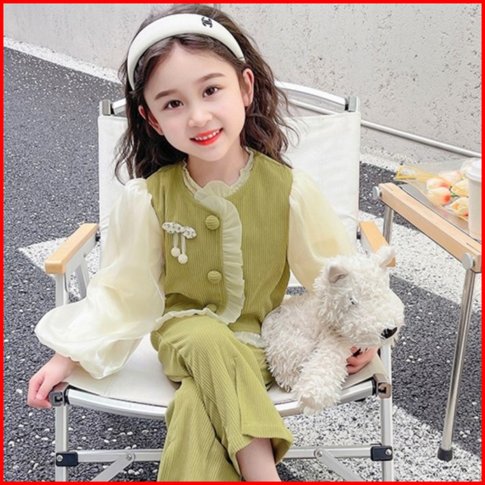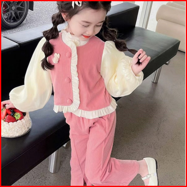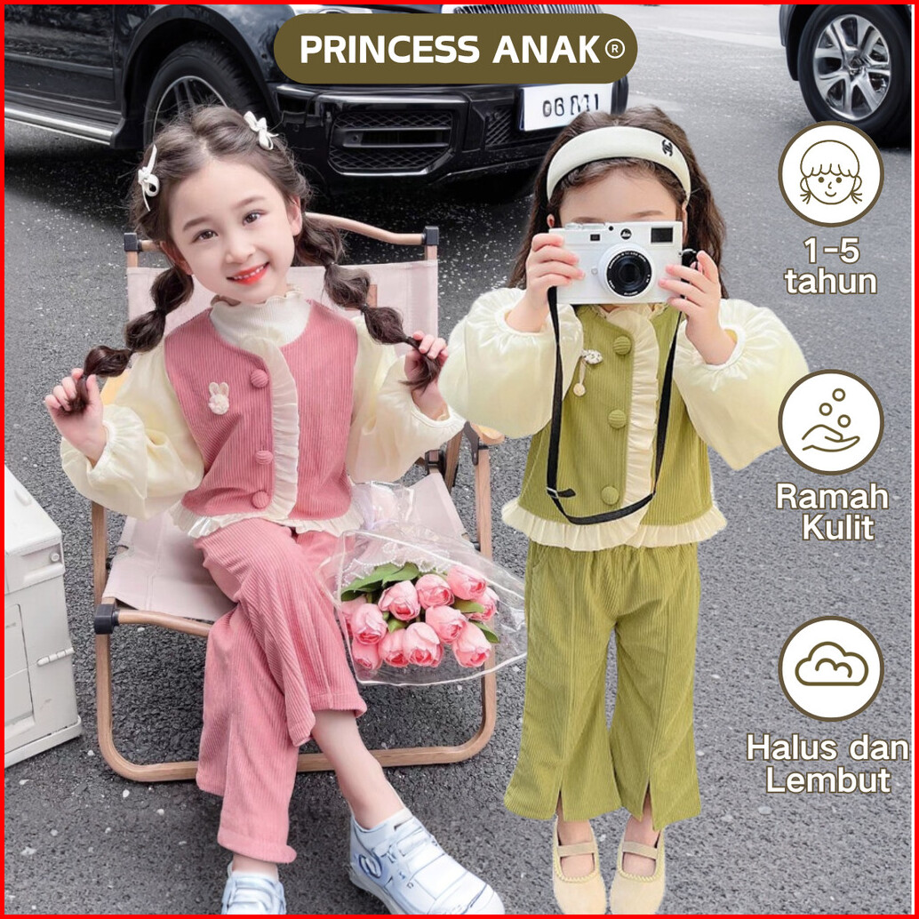 Princess Anak 1-5 Tahun Setelan Anak Perempuan Usia 1-4 Tahun Baju Atasan Rompi Corduroy Kancing Aktif Celana Corduroy C