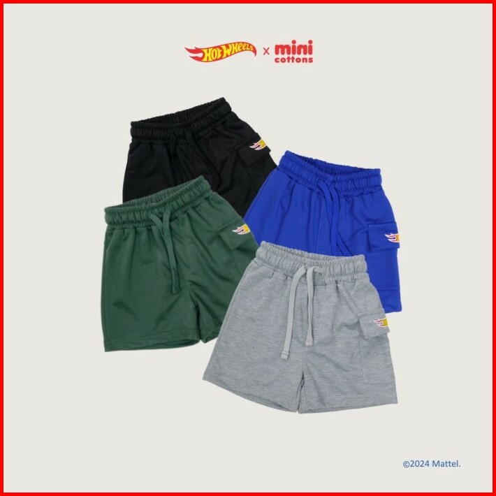 Hot Wheels X Minicottons Boys Short Pants Celana Pendek Cargo Hotwheels Anak Laki Laki 2-12 Tahun