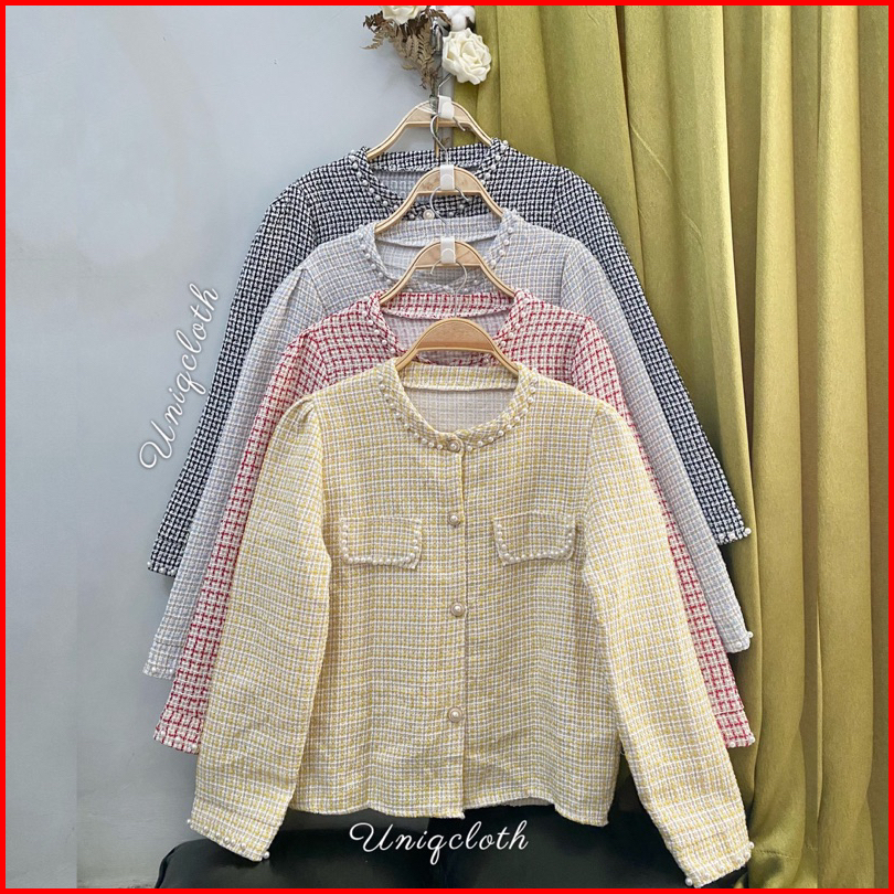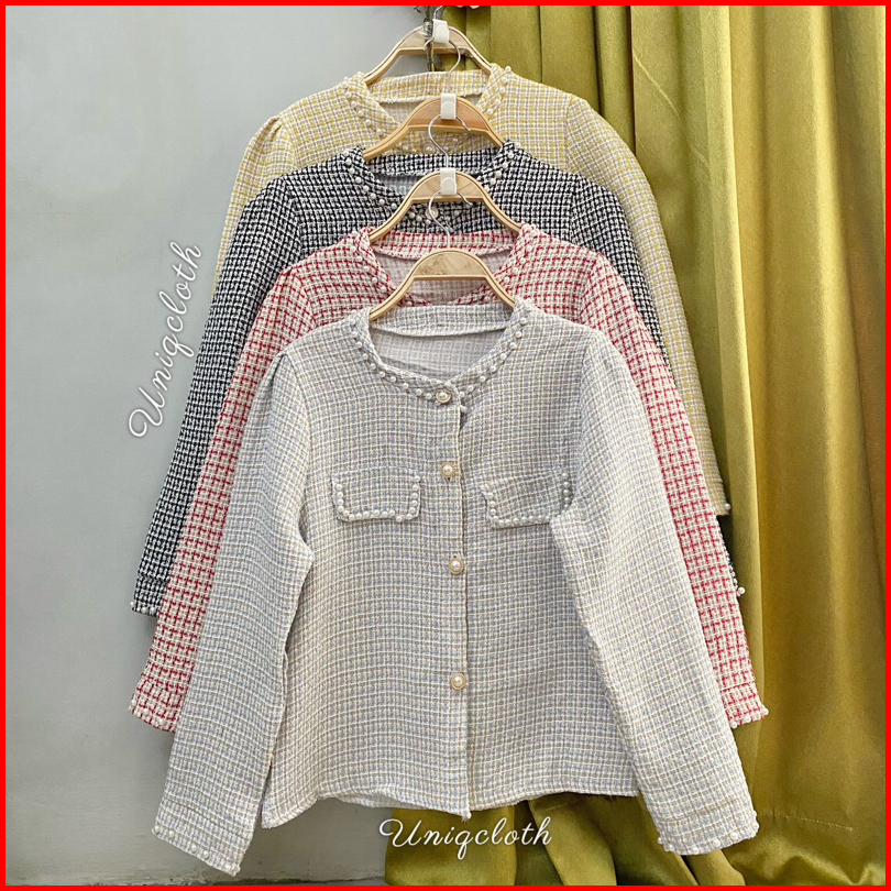Uniqcloth - Blazer Tweed Pearl Korean Style Import