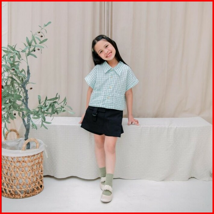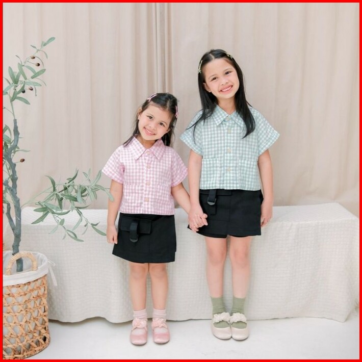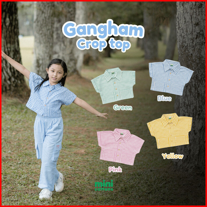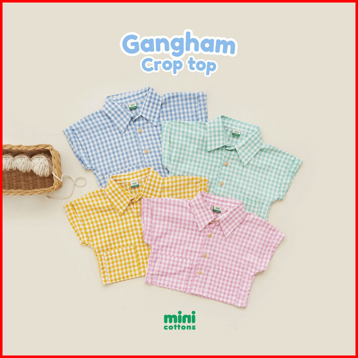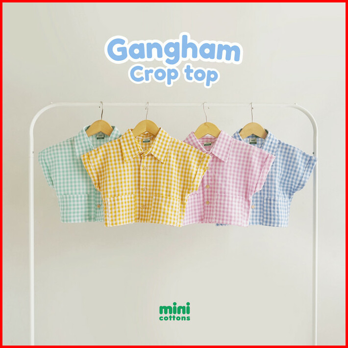 Mini Cottons Kemeja Gingham Crop Top Anak Perempuan 1-12 Tahun 100 Katun