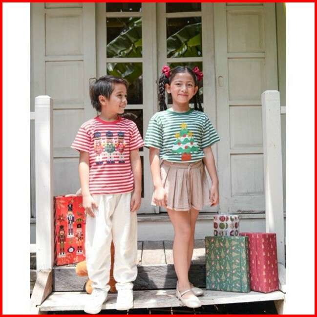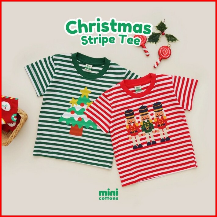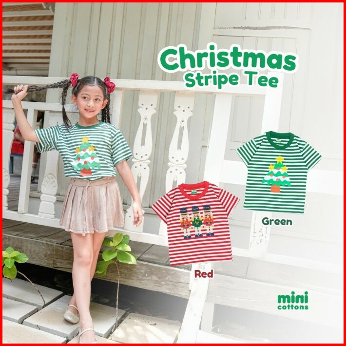Minicottons Stripe Tshirt Salur Kaos Natal Anak Christmas 1-12 Tahun