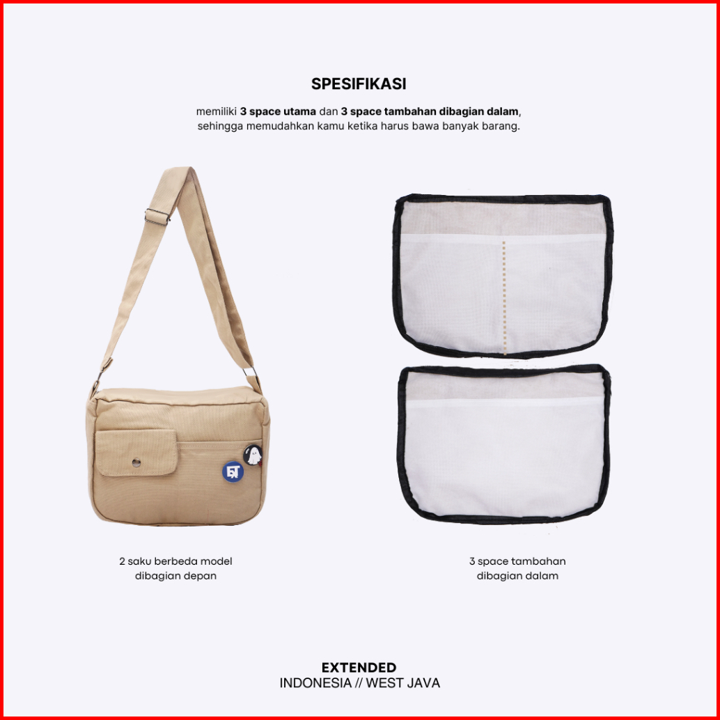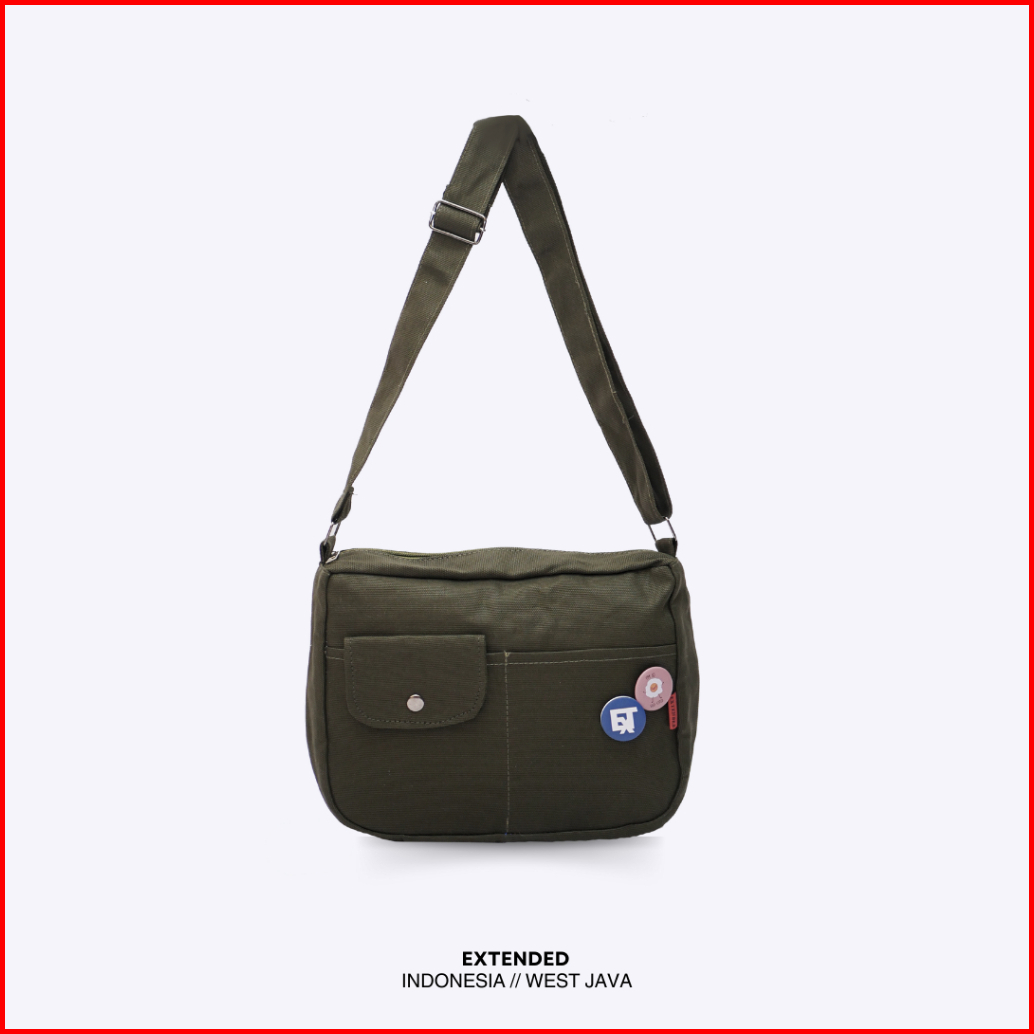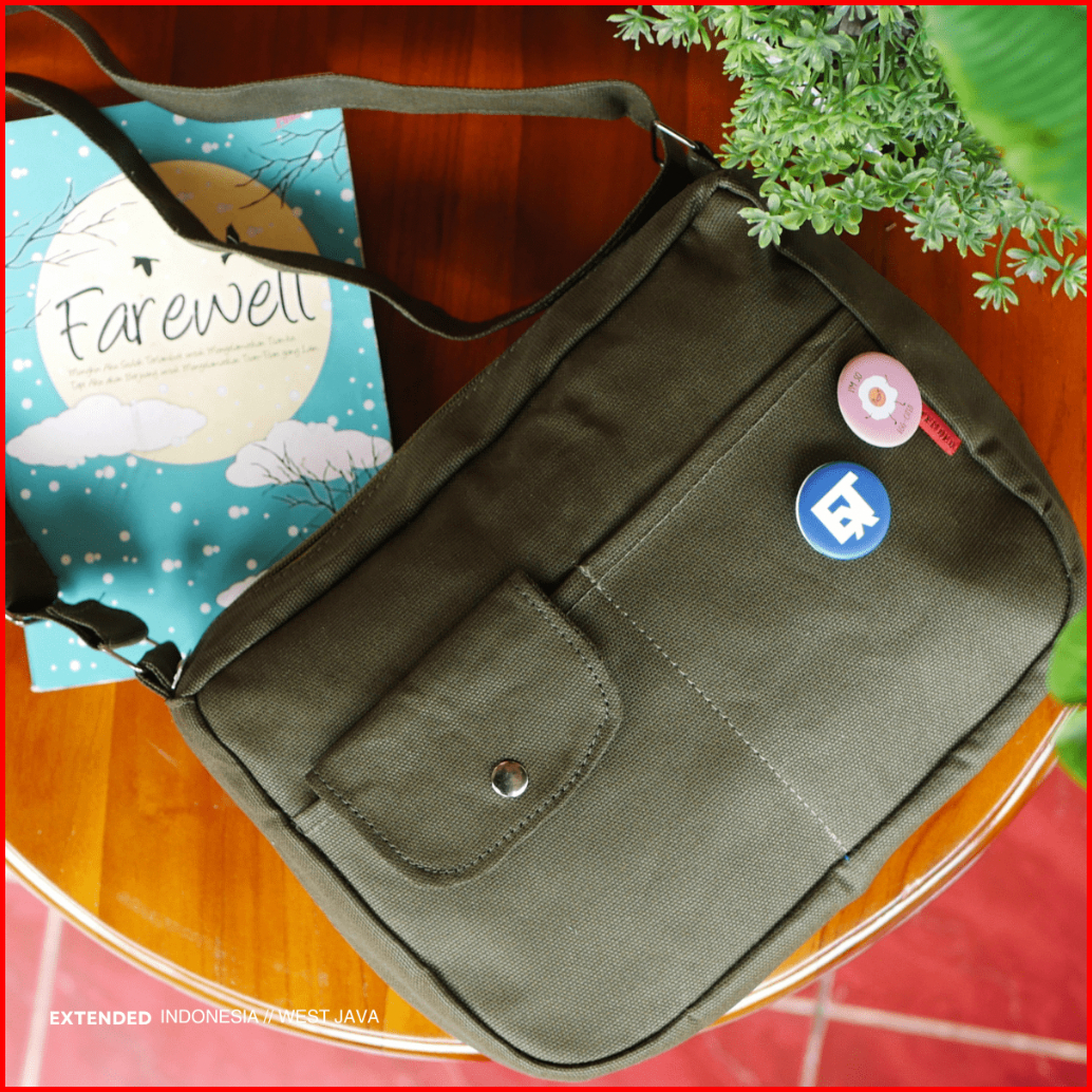 Extended Kizuko - Tas Selempang Pria Wanita Korean Style Slingbag Kanvas Unisex Terbaru Free Pin Bros