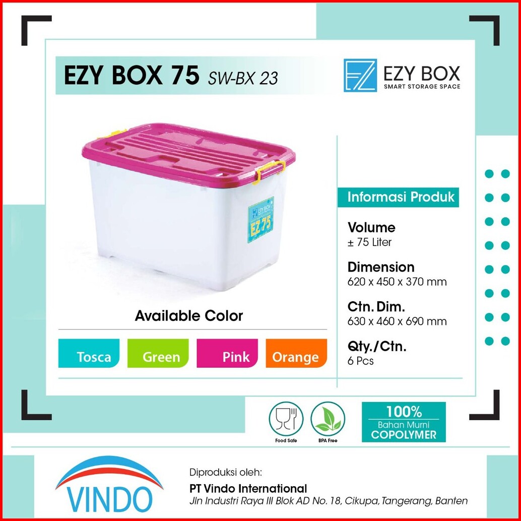 Ezy Box Container Box Plastik 75 Liter 82 Liter Tempat Penyimpanan Kontainer Jumbo Besar