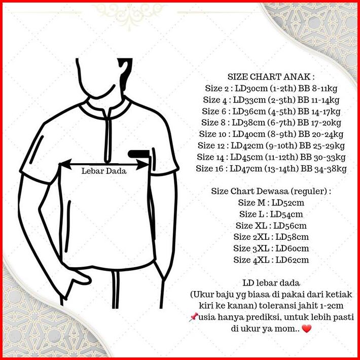 ANAK SIZE 2, ANAK SIZE 4, ANAK SIZE 6, ANAK SIZE 8, ANAK SIZE 10, ANAK SIZE 12, ANAK SIZE 14, ANAK SIZE 16, DEWASA SIZE M, DEWASA SIZE L, DEWASA SIZE XL, DEWASA SIZE 2XL, DEWASA SIZE 3XL, DEWASA SIZE 4XL