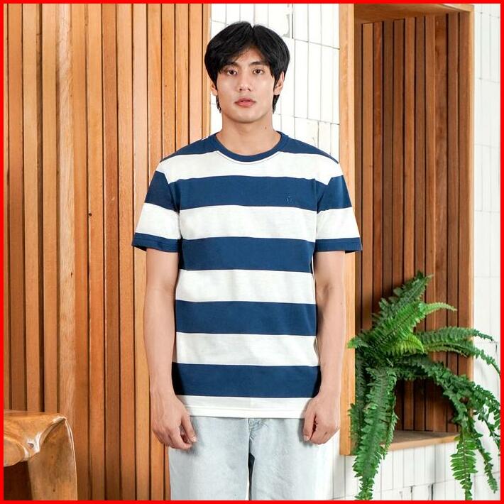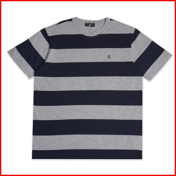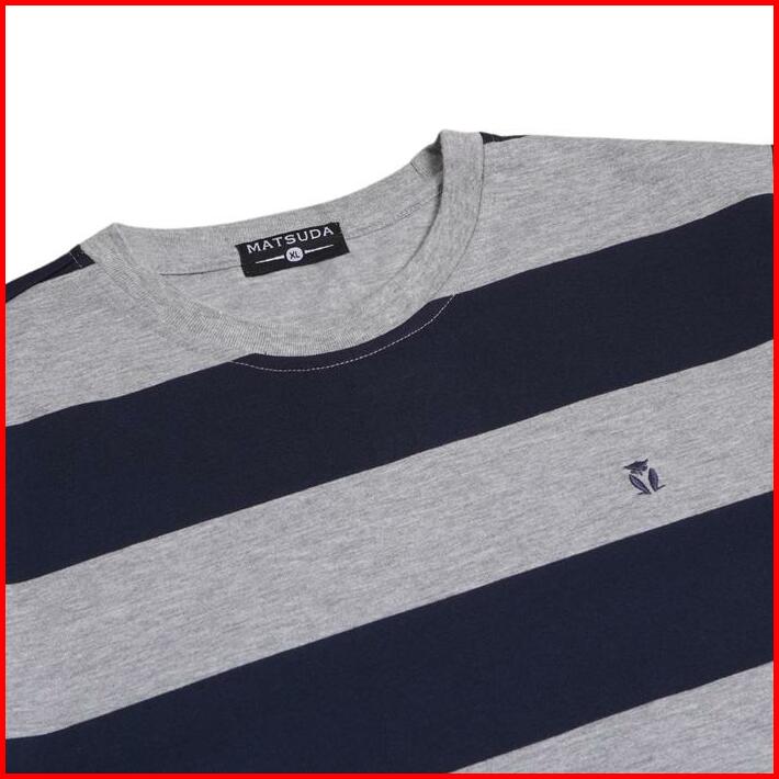 Matsuda T Shirt Pria Kaos Stripe Nanao Baju Katun Garis Steel Grey Navy