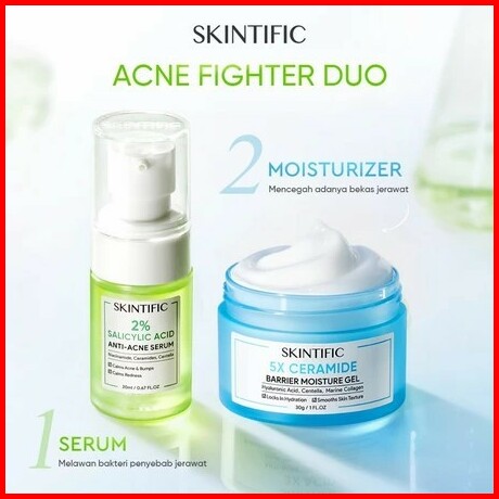 Skintific Acne Fighter Duo Set 2pcs 3x Acid Anti-acne Gel Moisturizer Salicylic Acid Serum