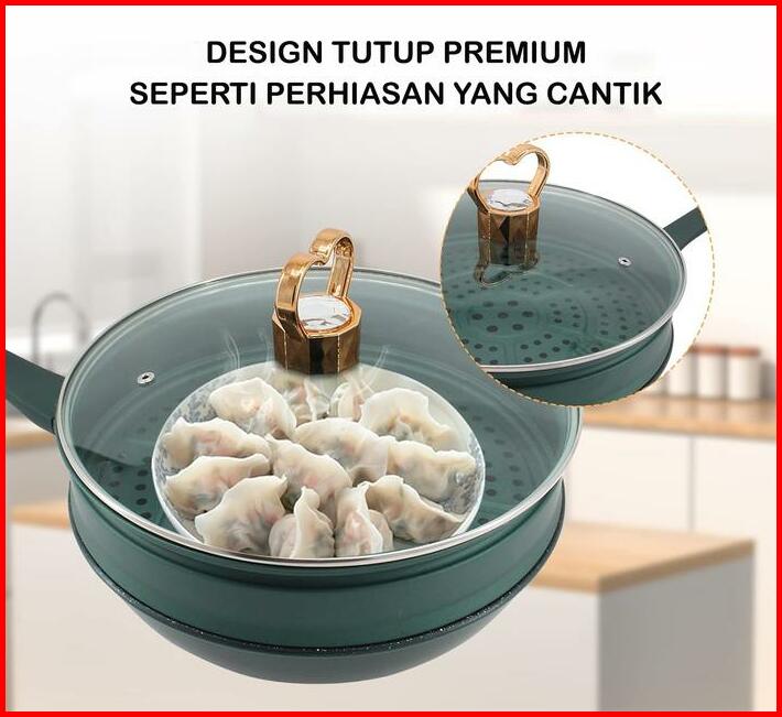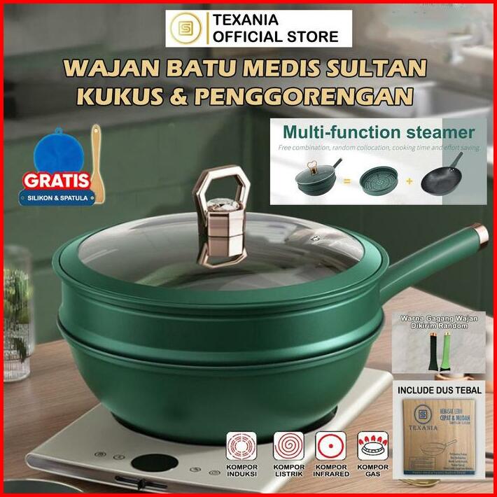 Esklusif Ischa Texania Wajan Batu Medis Steamer Anti Lengket Hijau Premium Panci Kukus Serbaguna Free Bonus 30cm Kitchen