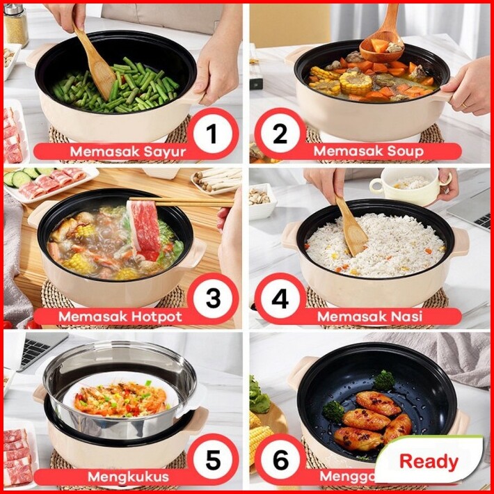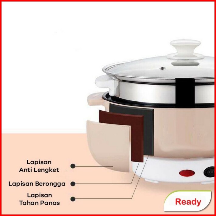 Panci Listrik Multifungsi Kukusan Steamer Panci Serbaguna 2.2l