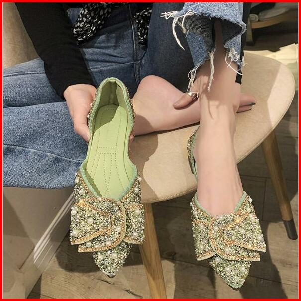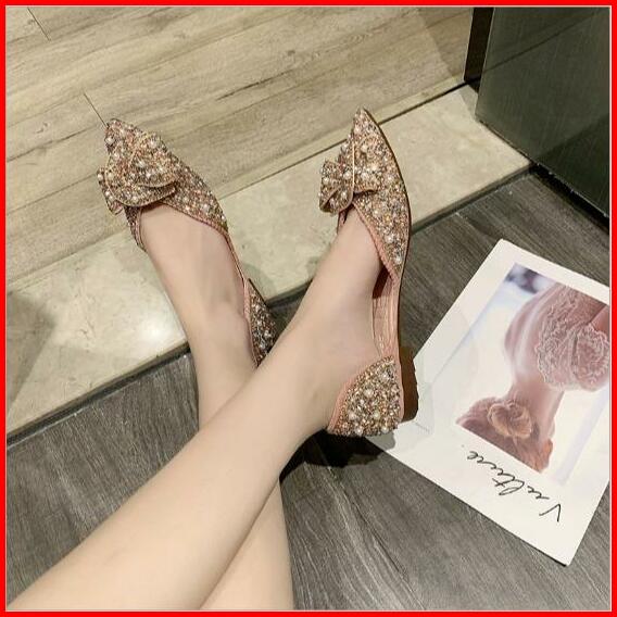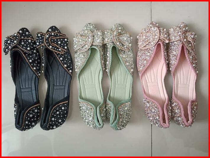 Mamasilo Sepatu Flat Shoes Pesta Wanita Couple Tanpa Hak Motif Blink Hitam Karet