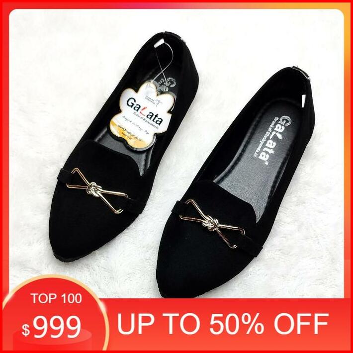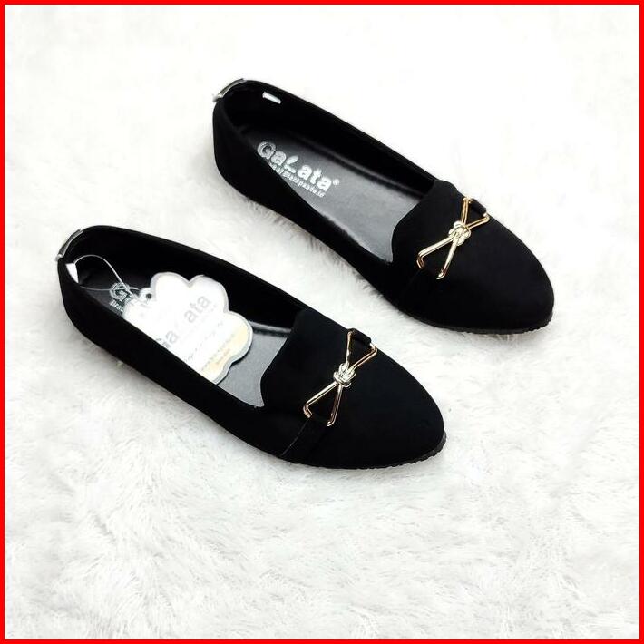 Blackpanda Lafur Flatshoes Wanita Cantik Ujung Lancip Hitam Kerja Karet Flat Shoes Sandal Sepatu Kerja Wanita