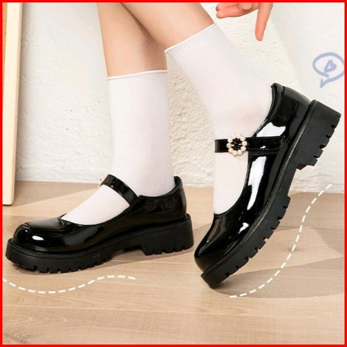 Sepatu Docmart Hitam Sekolah Remaja Perempuan Hak Datar Import Premium Gesper 09 Terbaru Fashion Korea Flatshoes Natasa