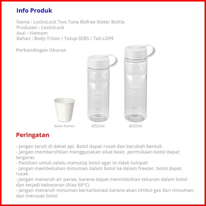 Lock Lock Water Bottle Tritan Two Tone Botol Air Minum 800ml Abf604