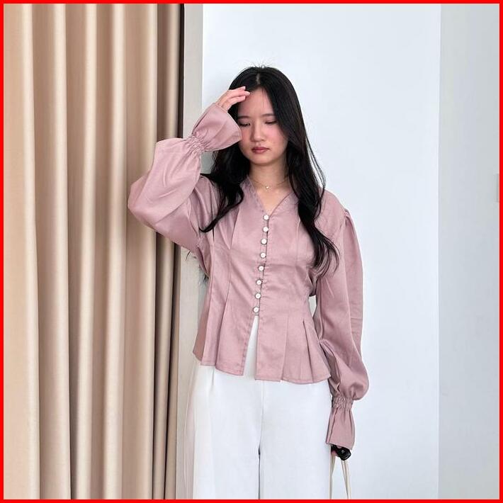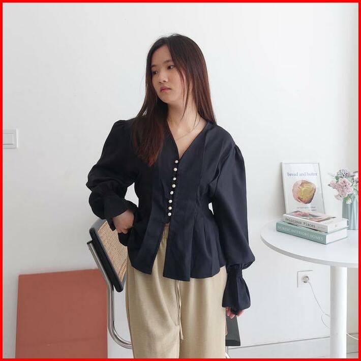 Bora Top Blouse Wanita Korea Hijab Elegan Simple Formal Atasan