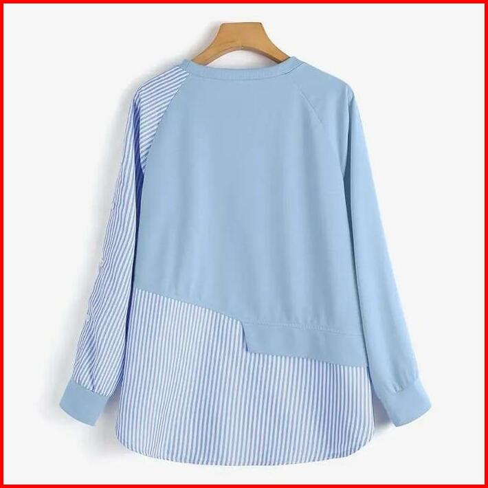 Maulida Blouse Skuba Mix Salur Atasan Wanita Korean Style Oversize Size S M L Xl Xxl Xxxl 5l Baju Top Dewasa