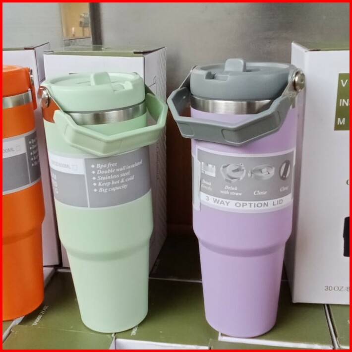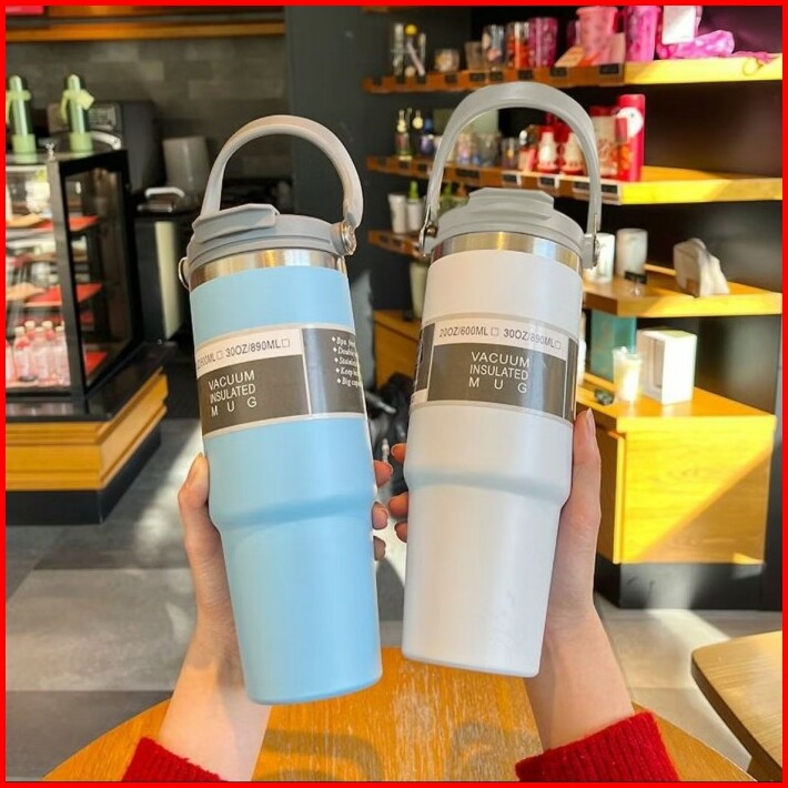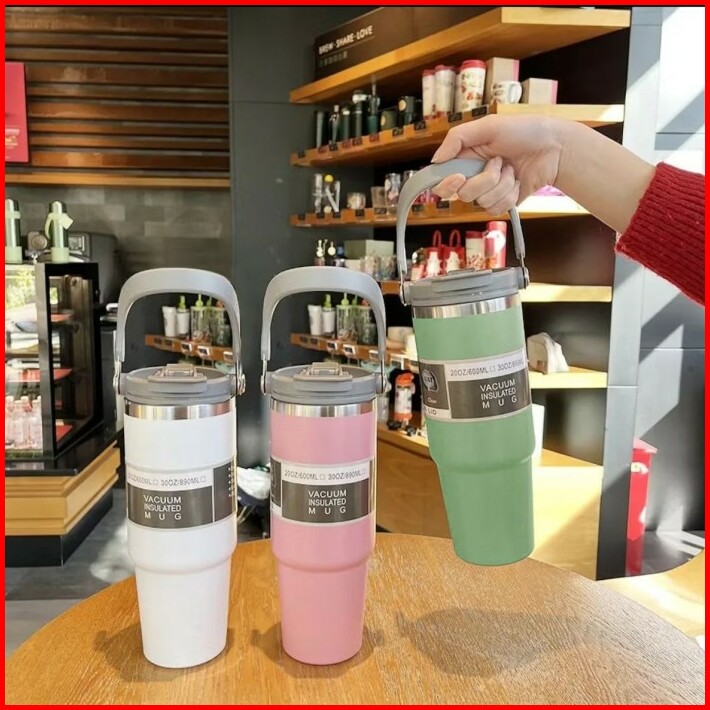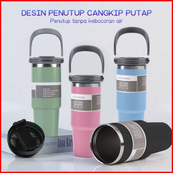 Tumbler Handle Stainless Steel 900ml Termos Vacuum Insulated Premium Sedotan