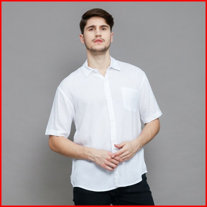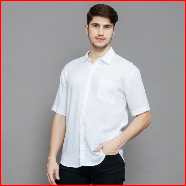 Baju Kemeja Pria Linen Polos Lengan Pendek Warna Putih Premium