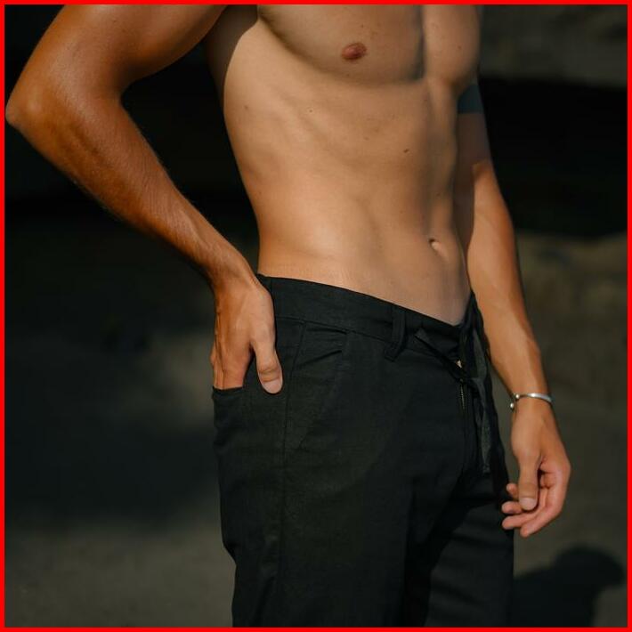 Celana Panjang Pria Linen Hitam Celana Pantai Linen Black Linen Trouser Pants Beachwell Bali