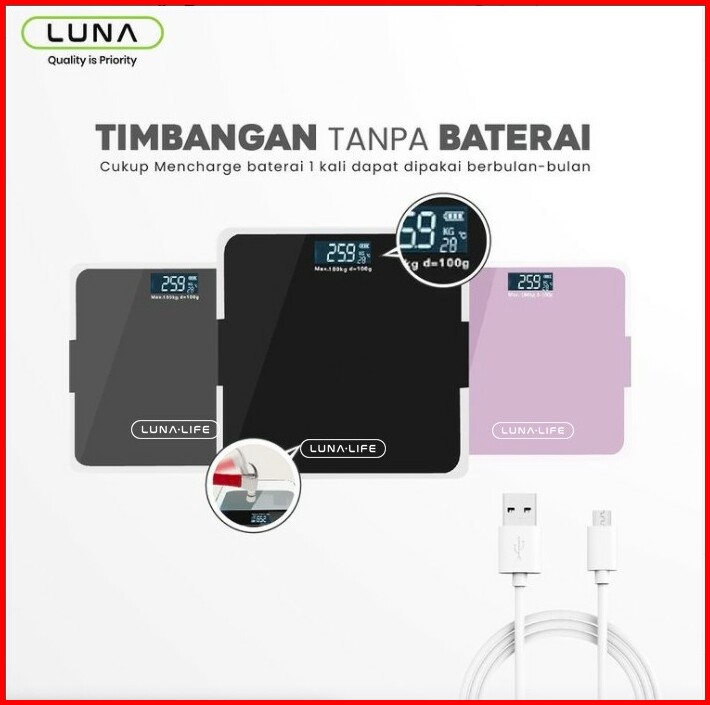 Luna Timbangan Badan Digital With Usb Charging Anti Pecah Weight Body