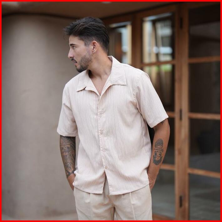 Kemeja Casual Kemeja Pantai Pria Lengan Pendek