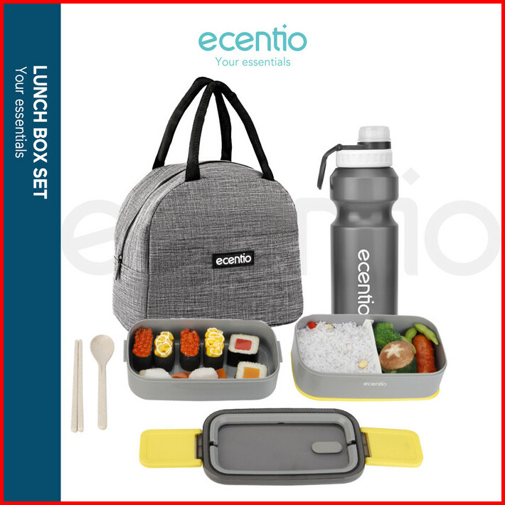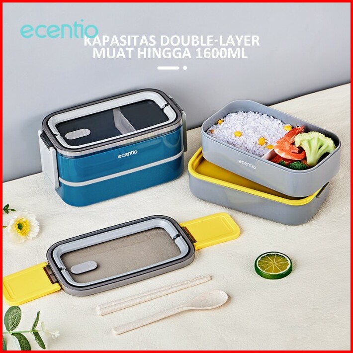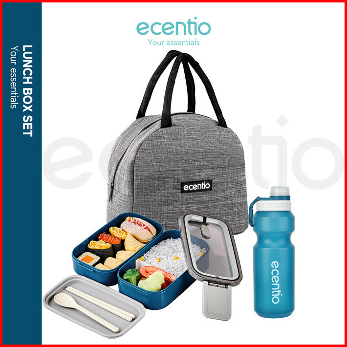 Ecentio 1.6ml Lunch Box Set Kotak Makan Anti Tumpah Lunch Bag Bpa Free