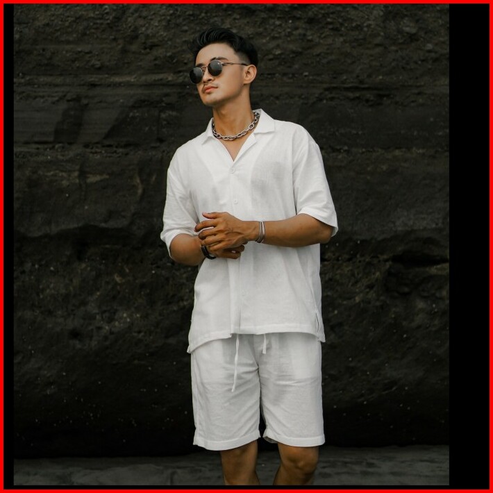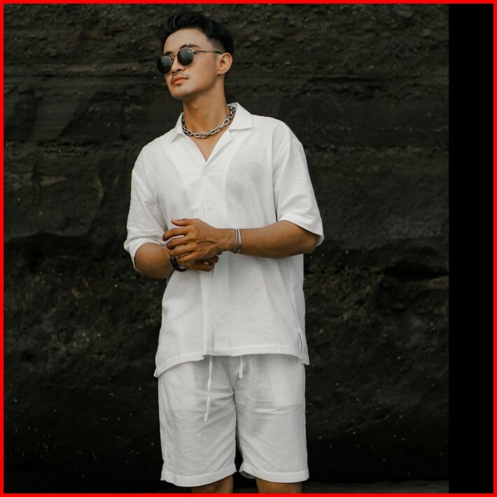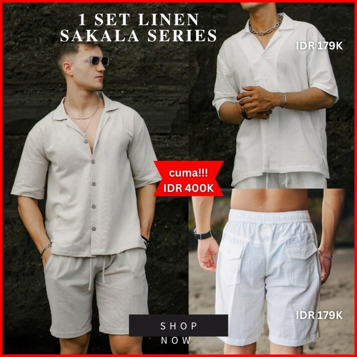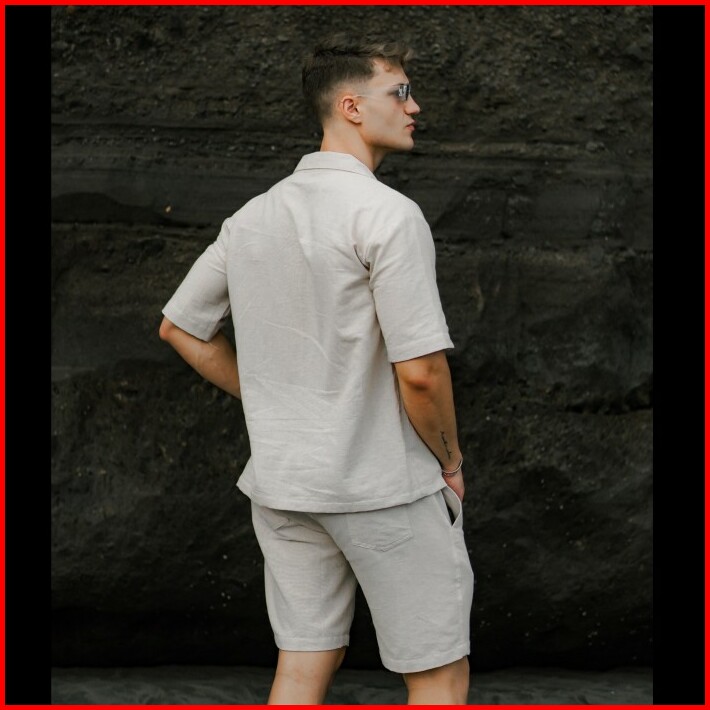Satu Set Celana Pendek Baju Kemeja Linen Oversized
