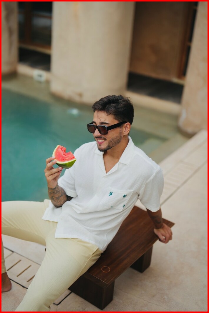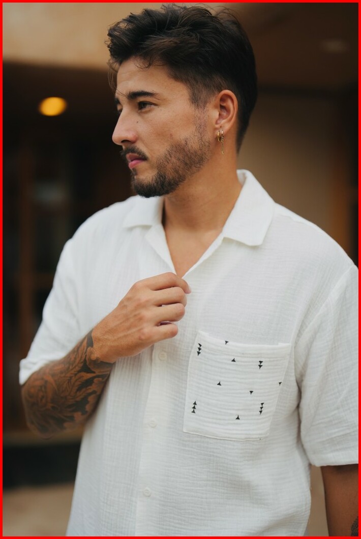 Beachwell Kemeja Katun Putih Pria Rosalia Motif Kaktus