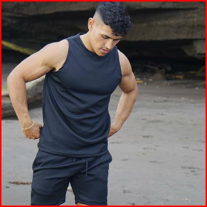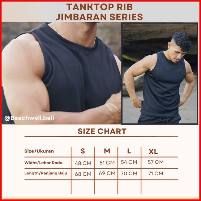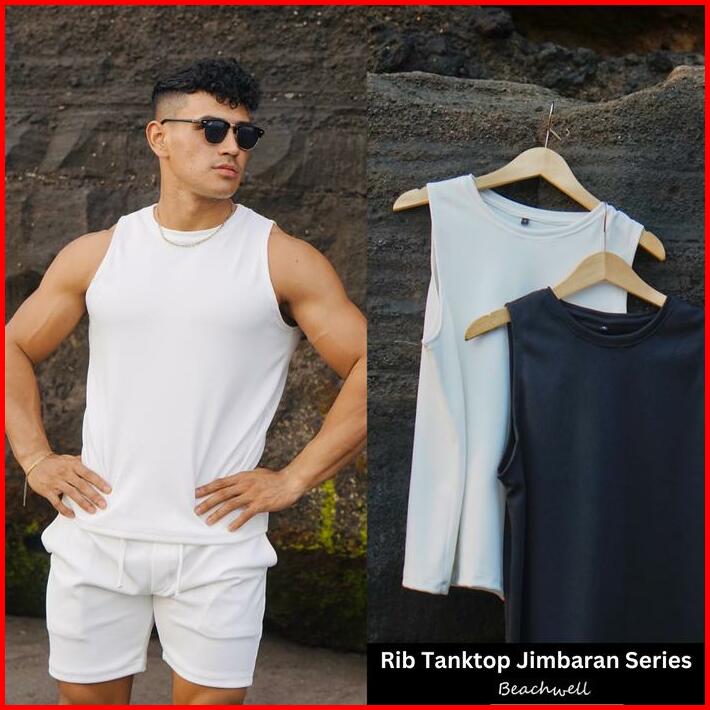 Tanktop Pria Rib Garis Garis Putih Hitam Polos Jimbaran Series Sportwear Beachwell Bali Outdoor