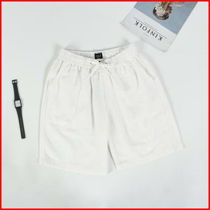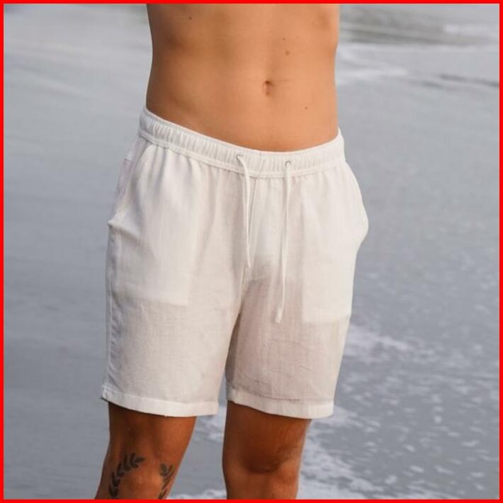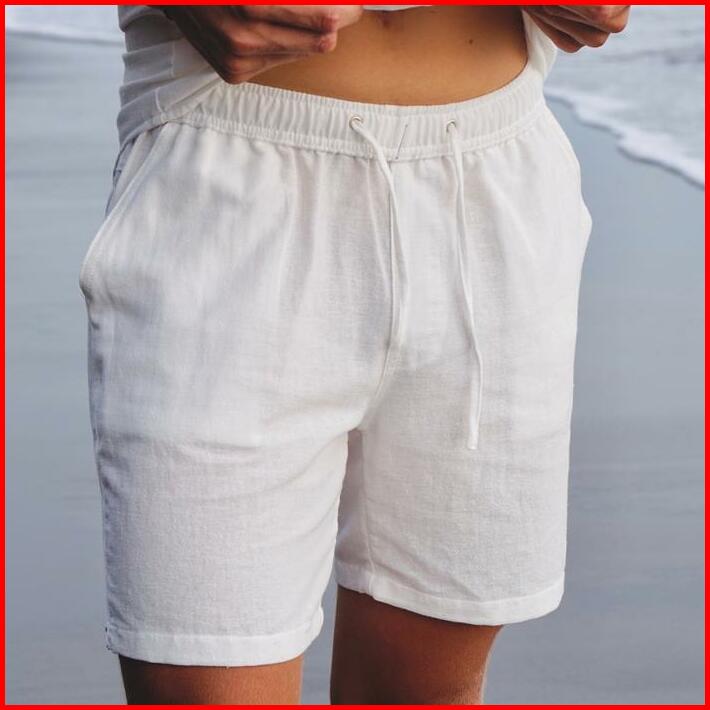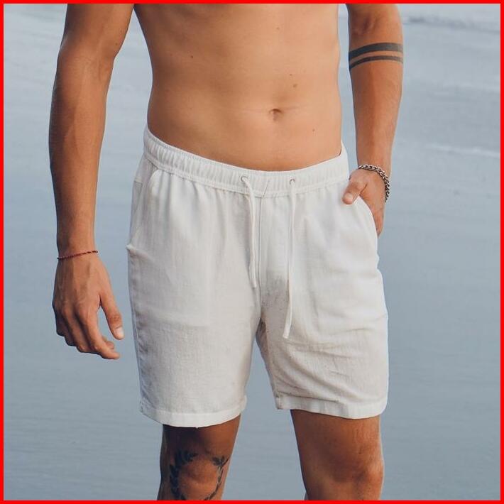 Celana Pendek Pria Linen Katun Angel Canggu Series Celana Pantai Celana Kasual Warna Putih Beachwell Bali Fit Nyaman
