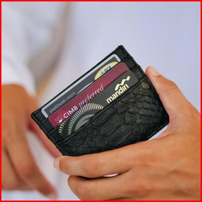 Beachwell Dompet Kartu Card Holder Kulit Ular Asli Phyton Mix Kulit Domba Dan Kulit Biawak Minimalis Simple Original Han
