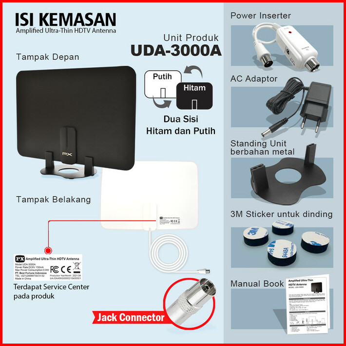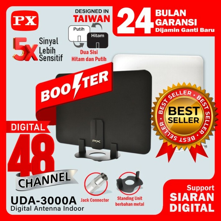 Antena Tv Digital Analog Indoor Dinding Dvb T2 Booster Px Uda-3000a